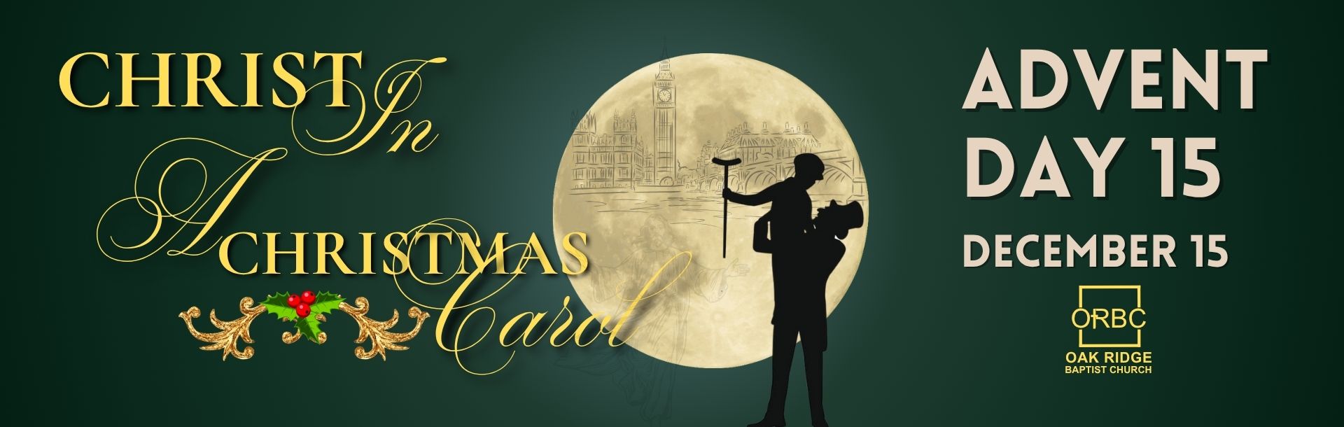 The holly, ribbons, and soft red accents connect the moment to Christmas symbolism and renewal.