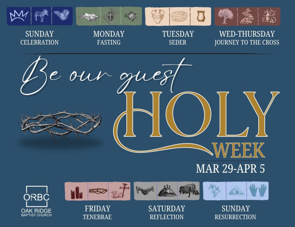 Our current sermon series continues through the Easter season. Seven Days in Jerusalem traces Jesus’ final week—from His triumphal entry to the cross—uncovering what He did, what He taught, and what He accomplished for us. Walk with Christ through these pivotal days and discover the depth of His love, the weight of His words, and the victory of His sacrifice.